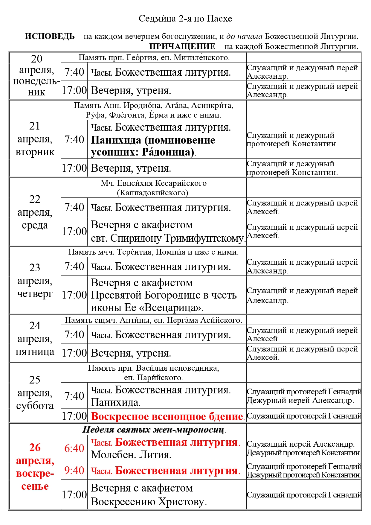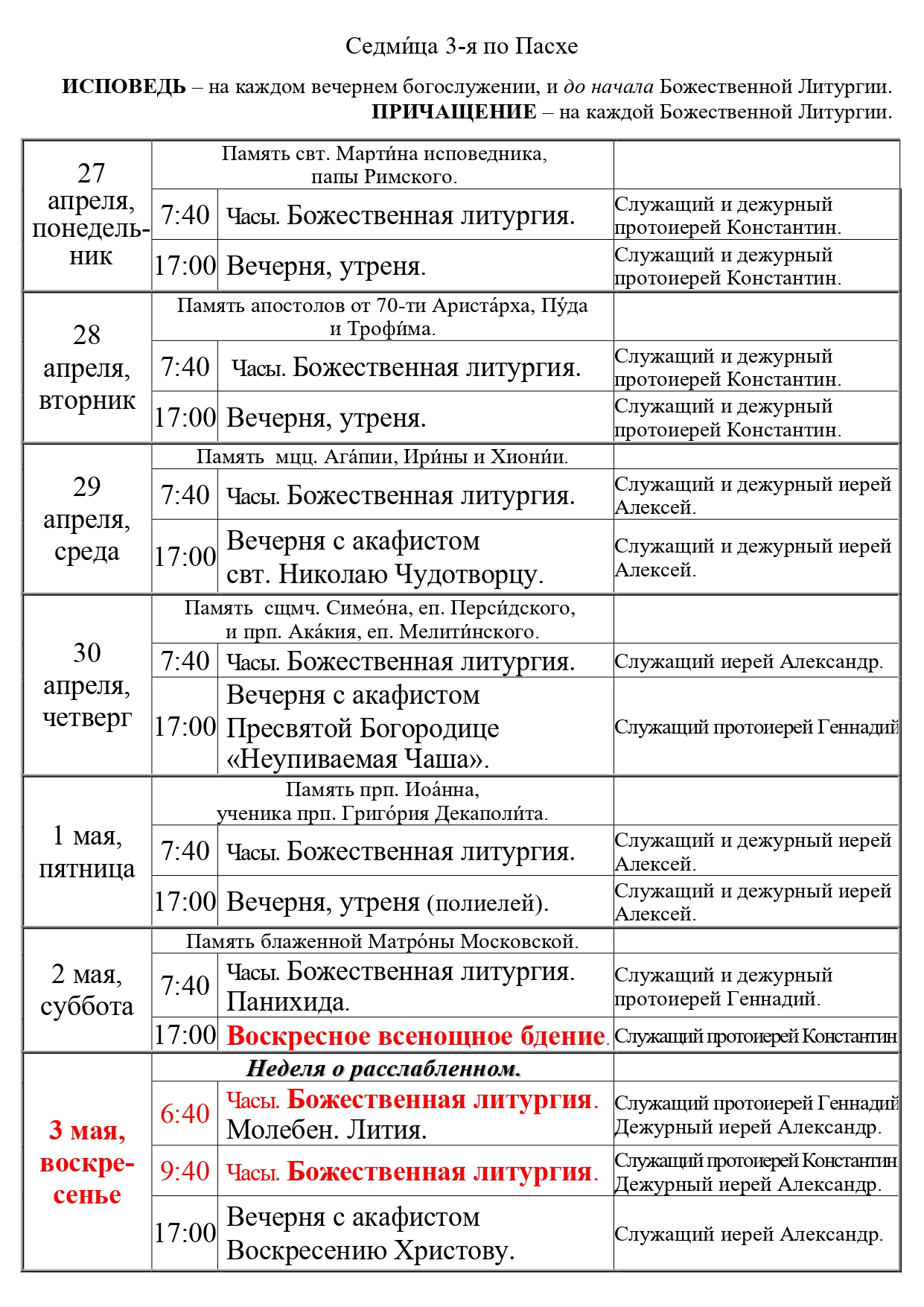 Время выхода расписания богослужений — каждая пятница, 17.00.